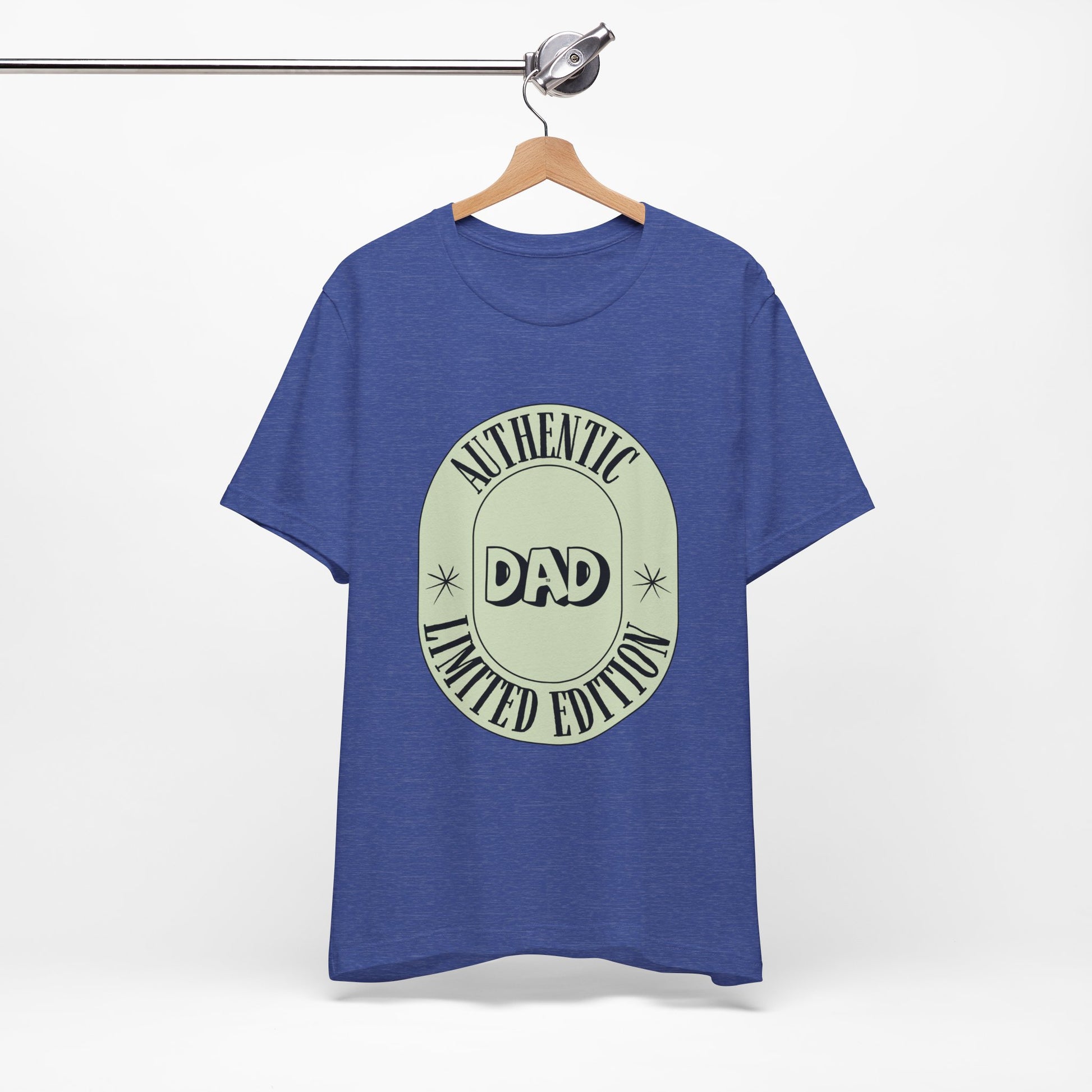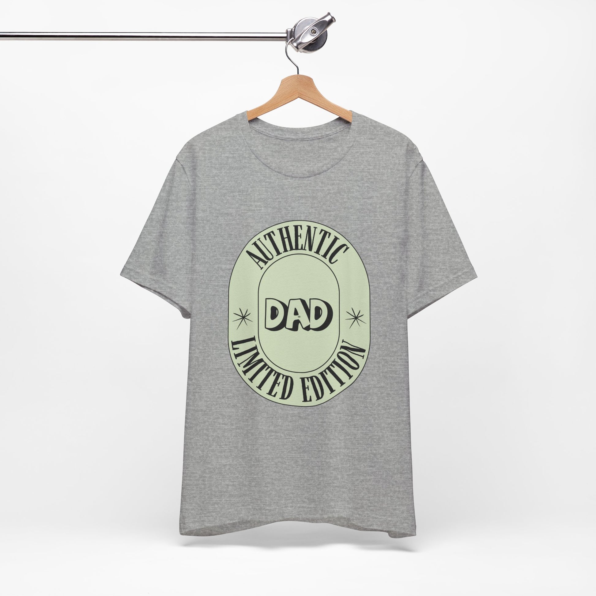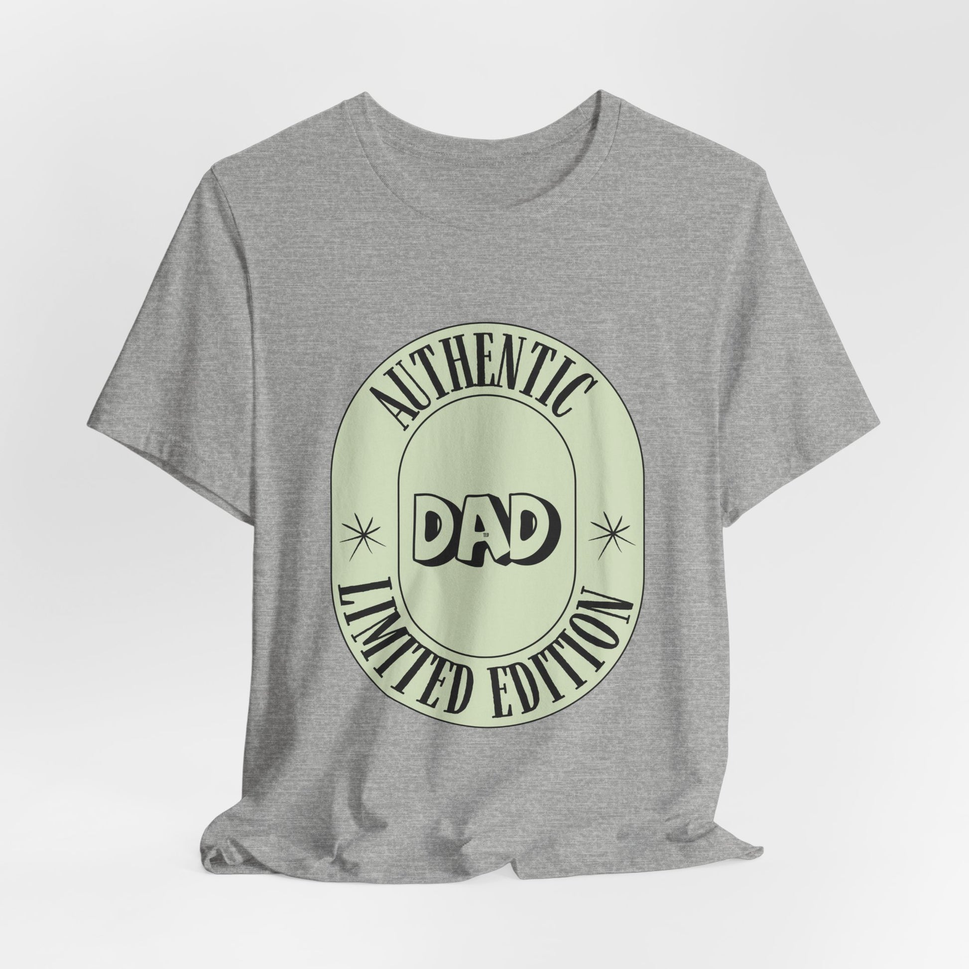 This lightweight jersey tee brings relaxed everyday wear together with a touch of vintage charm. The soft, breathable Airlume combed and ring-spun cotton feels gentle against skin and layers easily under jackets or over long-sleeves. A muted, badge-style graphic declares “DAD” in the center with a curved “Authentic / Limited Edition” frame — a low-key, nostalgic look that reads like a keepsake patch. Side seams and shoulder tape keep the silhouette tidy after repeated washes, while the ribbed crew neck holds its shape for a neat, lived-in finish. Tear-away labeling reduces irritation so it’s comfortable for long days at home, the workshop, or casual outings. Responsibly made and REACH certified, the shirt blends classic style with everyday practicality for someone who values comfort and subtle personality.
